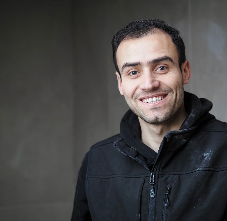 Gekommen, um die Bäder, Küchen und Böden dieser Welt schöner zu machen: Jamal Almatora. In Syrien die ersten Fliesen gelegt, in Deutschland das Handwerk gelernt und den Meister gemacht – und 2025 JA FLIESEN in Dortmund gegründet.